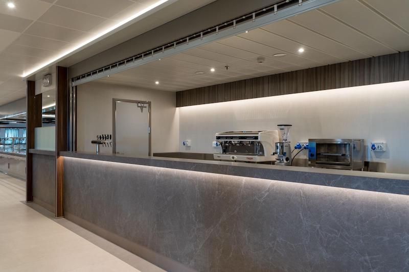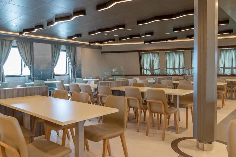 El nuevo “Ciudad de Valencia” es un “smartship” con una superficie de 1.500 metros cuadrados en dos cubiertas para ocio y disfrute para un millar de pasajeros en viajes internacionales cortos distribuidos en ambientes diferenciados. Por su capacidad de alojamiento, amplitud y servicios a bordo –en el que Naviera Armas Trasmediterránea ha volcado toda su experiencia–, le convierte en un barco muy atractivo para la línea Cádiz-Canarias, donde se presenta como la novedad más destacada del verano 2020.