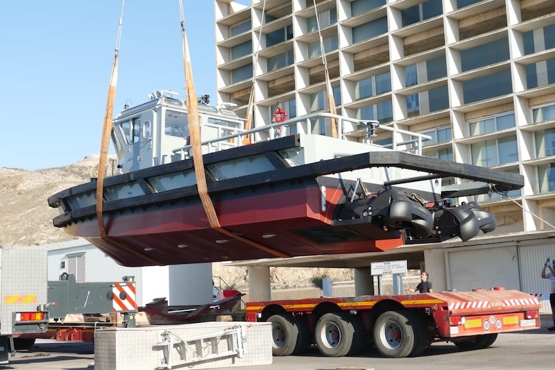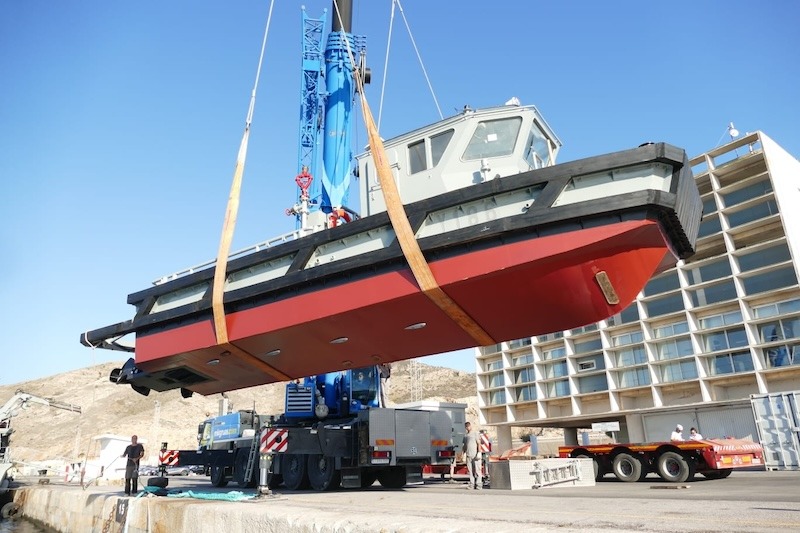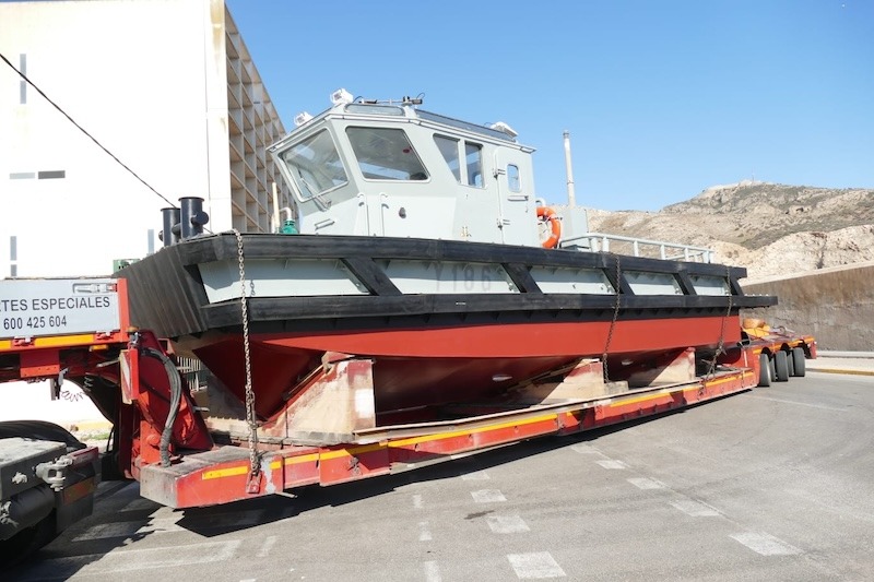 La empresa murciana Alcántara Sistemas ha puesto a flote este martes la tercera y última de tres empujadoras de los nuevos submarinos de la serie –80, que corresponde al numeral Y 186. Se trata de unidades auxiliares para las maniobras del Tren Naval del arsenal de Cartagena. En breve realizará pruebas de mar previas a su entrega oficial a la Armada.