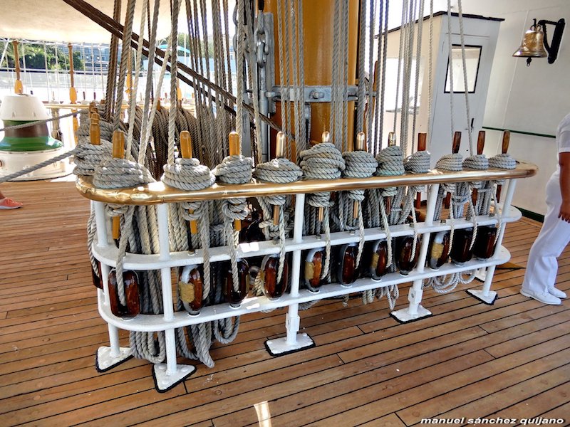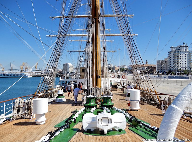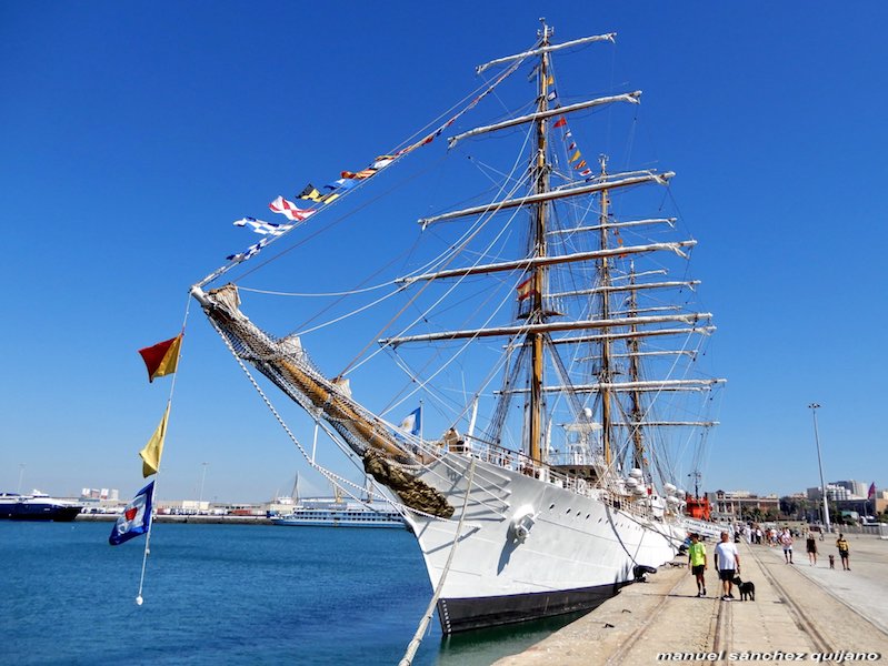De 3.765 toneladas de desplazamiento máximo, mide 103,75 m de eslora, 14,30 m de manga y 6,60 m de calado. Apareja de fragata de tres palos y bauprés y despliega 27 velas con una superficie de 2.650 metros cuadrados. Dispone de cuatro cañones de 47 mm para salvas de ordenanza y para las tiempos de calma chicha y maniobra en puerto está propulsado por dos motores Sulzer, de 1.200 caballos de potencia cada uno, que le permite mantener una velocidad de 13,8 nudos. Su dotación habitual está compuesta por 24 jefes y oficiales, 187 suboficiales, cabos y marineros y dispone de alojamiento para 150 cadetes de las diversas especialidades de la Escuela Naval Militar.