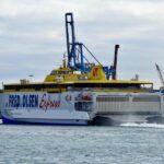 Fred. Olsen anuncia que el trimarán “Bajamar Express” entrará en línea el próximo 10 de agosto entre Gran Canaria y Tenerife. Tiene capacidad para 1.100 pasajeros, 276 automóviles y puede mantener una velocidad de 36 nudos.
