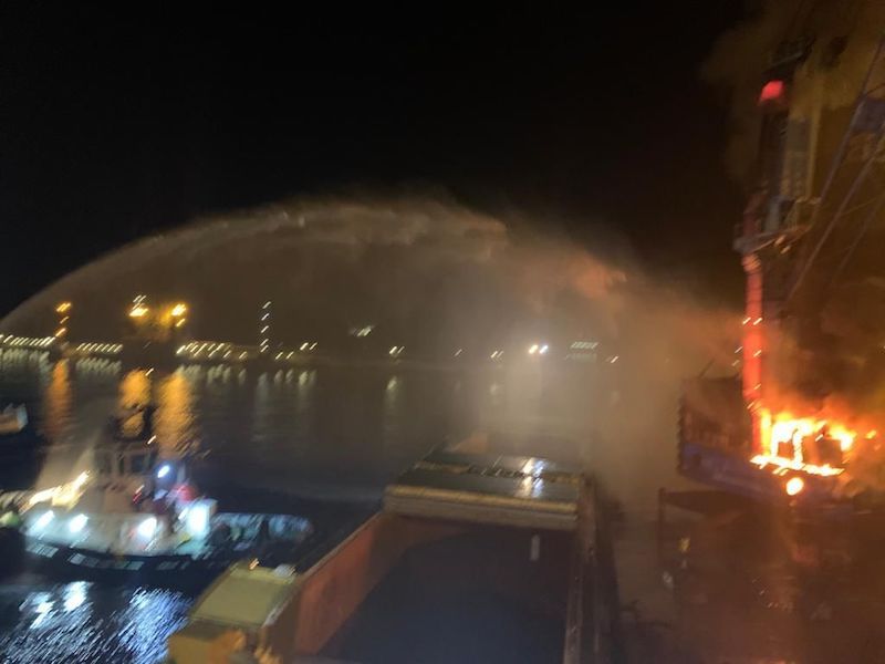 La rápida intervención de los remolcadores “VB Cartagena” y “VB Asdrúbal”, de la flota de Boluda Towage Spain, evitó que un estibador gruista resultase herido por un incendio ocurrido la semana pasada en la terminal de graneles de Escombreras, en el puerto de Cartagena (Murcia).