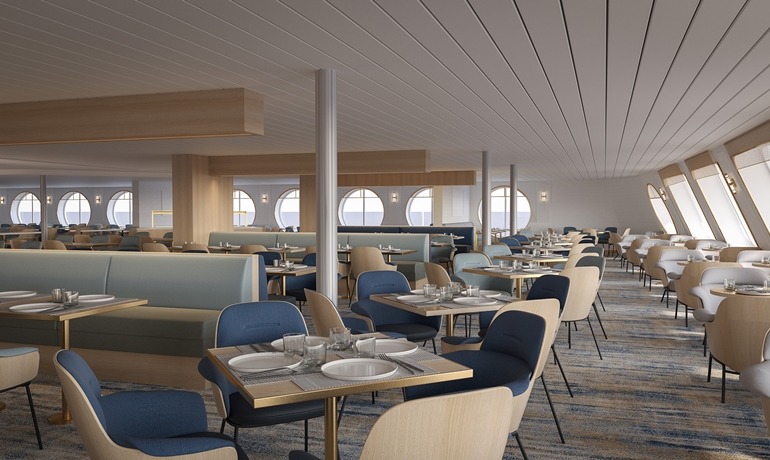 Los pasajeros se sentirán como si estuvieran en Bretaña, ya que el diseño interior se ha realizado en colaboración con la Región de Bretaña. Las tripulaciones francesas contribuirán a ese empeño, ya que más de tres cuartas partes proceden de la península noroeste.