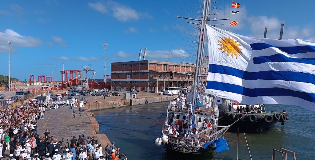 A bordo viajan 24 guardiamarinas de la Escuela Naval Militar de Uruguay y también embarcarán en varios tramos oficiales invitados de las Armadas de Alemania, Reino Unido y EE.UU.