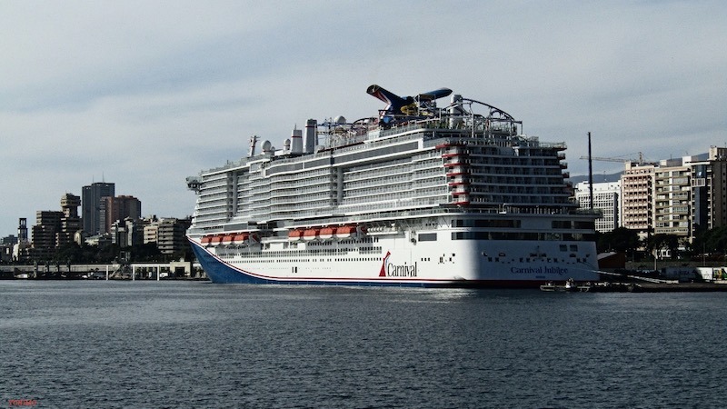 El «Carnival Jubilee» de 206.205 toneladas de registro, es el mayor buque de cruceros que ha hecho escala en Santa Cruz de Tenerife en toda su historia. Resulta cuando menos sorprendente que su presencia haya pasada casi desapercibida para los medios de comunicación en general y para TVC en particular que, hoy mismo, ni se dignó mencionar la presencia durante dos días, del «Carnival Jubilee» en nuestro puerto, aunque sí destacó la escala de tres cruceros en Las Palmas. También resulta sorprendente que la TVE que pagamos todos, incluidos los tinerfeños y los palmeros, informe a bombo y platillo sobre la escala de cualquier buque de cruceros en cualquier puerto peninsular. También quisiera destacar que el «Carnival Jubilee» no es el primero de su empresa que nos visita. También lo hicieron en viaje de entrega desde los astilleros Meyerwerft e Italcantieri respectivamente, el «Carnival Celebration» en 2022 y el «Carnival Panorama» en 2019.