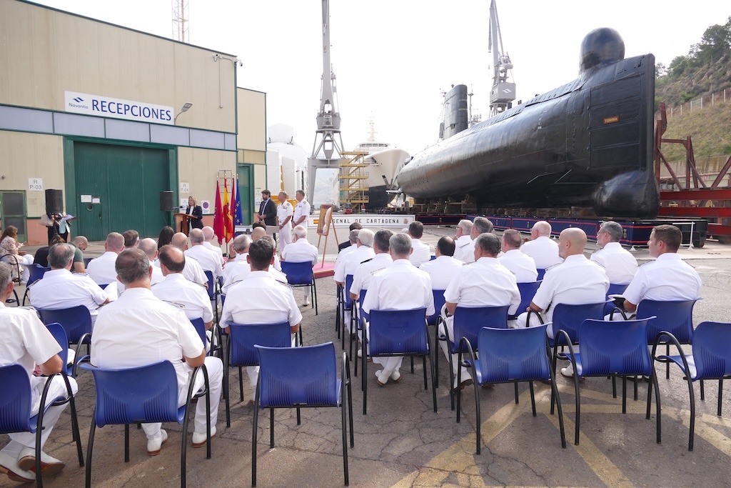 En el acto han intervenido el almirante jefe del Arsenal, VA Alejandro Cuerda; la alcaldesa Noelia Arroyo y el presidente de la Región de Murcia, Fernando López Miras. Han asistido antiguos comandantes del submarino —entre ellos el almirante Adolfo Baturone Santiago—, así como oficiales, suboficiales y cabos especialistas. Entre ellos figura el AN (r) e historiador naval Diego Quevedo Carmona, autor del reportaje fotográfico que acompaña.