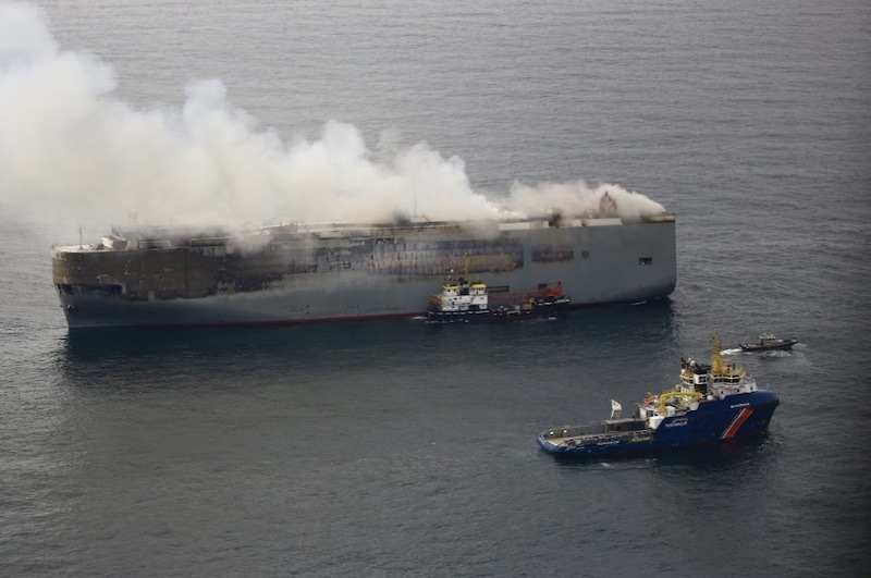 De los 3.783 coches embarcados en el buque PCTC de bandera panameña “Fremantle Highway” (IMO 9667344), incendiado hace unos días frente a las costas de Holanda, 498 eran eléctricos, aunque inicialmente se había dicho que solo eran 25. El incidente ha costado la vida a un tripulante y otros siete resultaron heridos al lanzarse por la borda del barco en llamas.