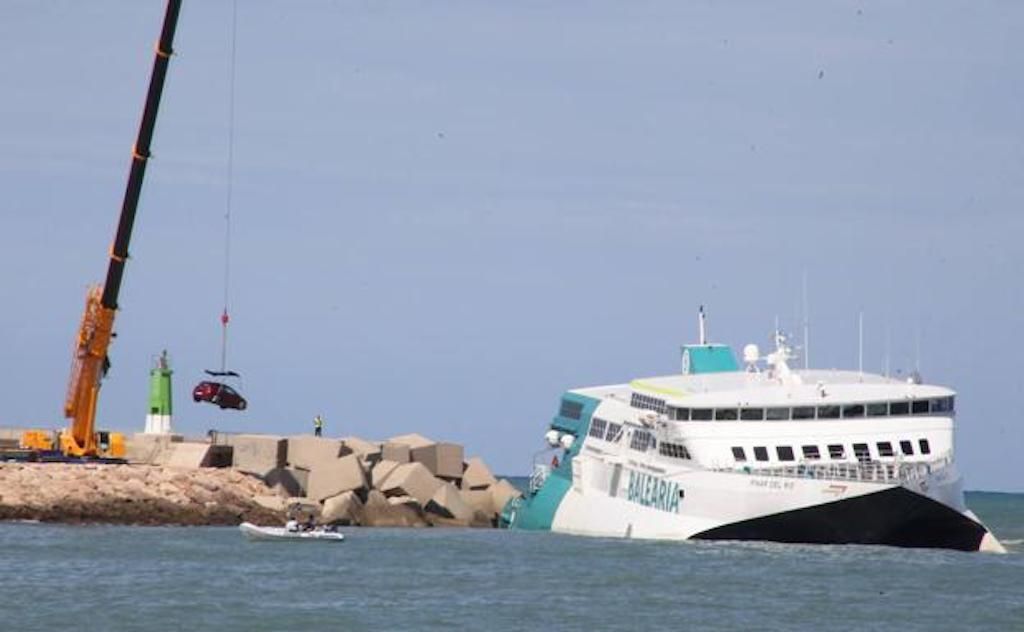 Aprovechando una mejoría del tiempo, Balearia ha comenzado hoy las operaciones de descarga de los coches que se encuentran a bordo del catamarán “Pinar del Río” con la ayuda de una potente grúa, apoyada sobre el dique norte del puerto de Denia, informa la edición digital del periódico valenciano lasprovincias.es.