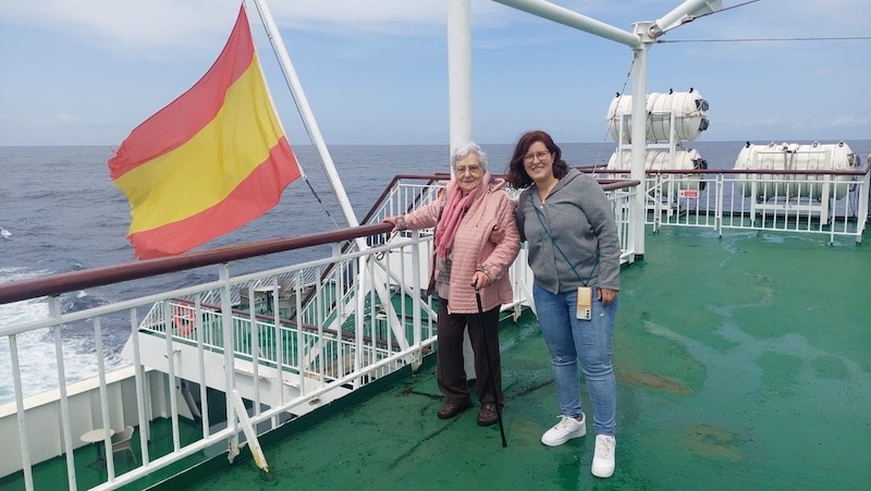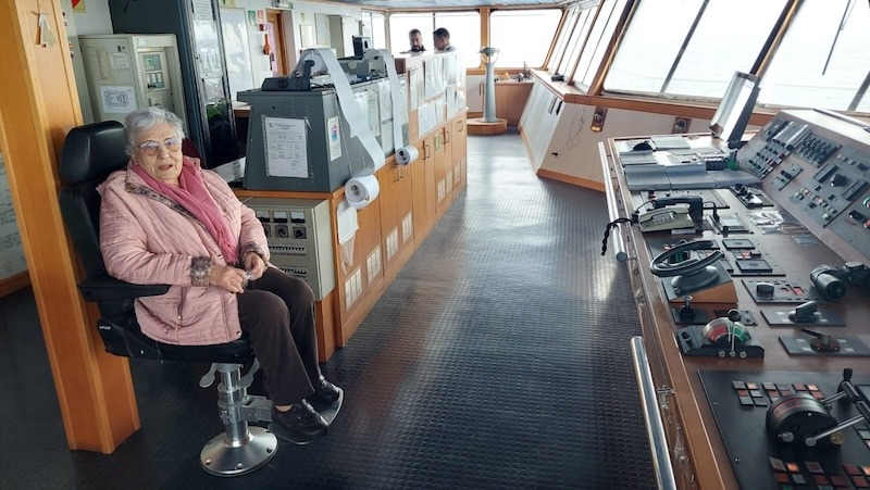 A sus 91 maravillosos años, doña María Carmela Lirio Ramón ha visto cumplido uno de los sueños más anhelados de su vida. Después de viajar tantas veces a lo largo de su dilatada vida entre La Palma y Tenerife, no había tenido la oportunidad “de ver y saber cómo se maneja un barco”, cómo funciona y de conocer a quienes lo hacen posible.