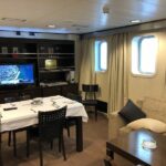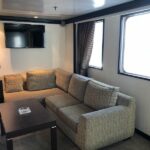 En la cubierta principal, además de los respectivos salones situados a proa y popa, tiene dos tiendas –una de ellas de ropa de marca–, así como un restaurante a la carta, que es un expositor de la cocina regional y en el que destaca una carta de vinos íntegramente formada por vinos portugueses. Existe una zona VIP formada por cinco camarotes, situada a continuación del puente de mano. En la cubierta inferior dispone de un cine, una sala de juegos y una espaciosa guardería. Todo el personal a bordo es muy amable, atento y cordial, lo cual se convierte en otro de los atractivos de este barco, que siempre nos llamó la atención.