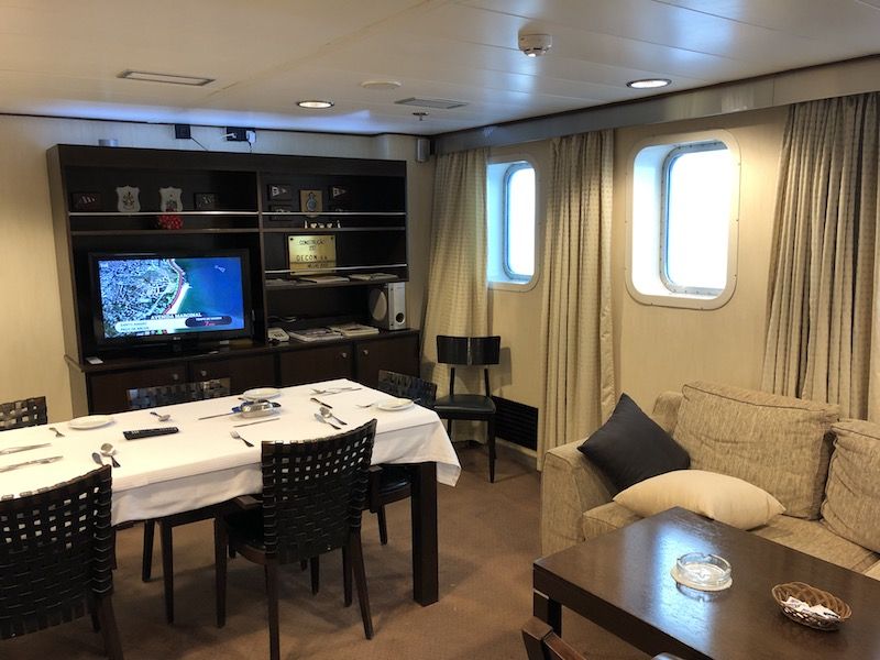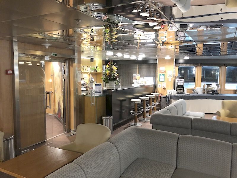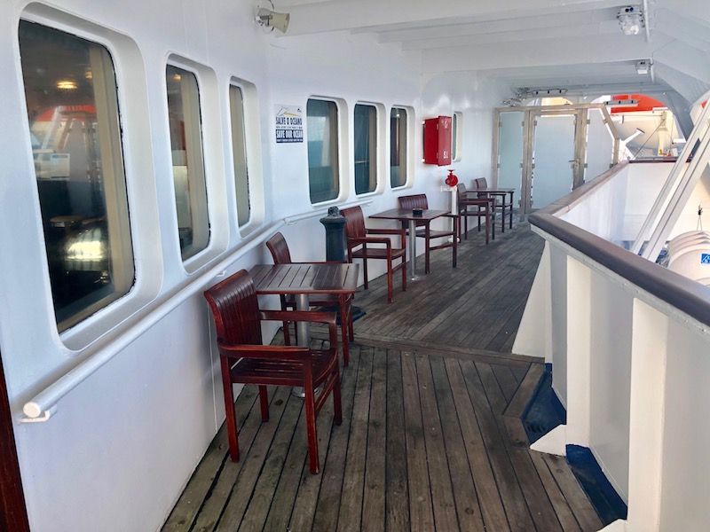 En la cubierta principal, además de los respectivos salones situados a proa y popa, tiene dos tiendas –una de ellas de ropa de marca–, así como un restaurante a la carta, que es un expositor de la cocina regional y en el que destaca una carta de vinos íntegramente formada por vinos portugueses. Existe una zona VIP formada por cinco camarotes, situada a continuación del puente de mano. En la cubierta inferior dispone de un cine, una sala de juegos y una espaciosa guardería. Todo el personal a bordo es muy amable, atento y cordial, lo cual se convierte en otro de los atractivos de este barco, que siempre nos llamó la atención.