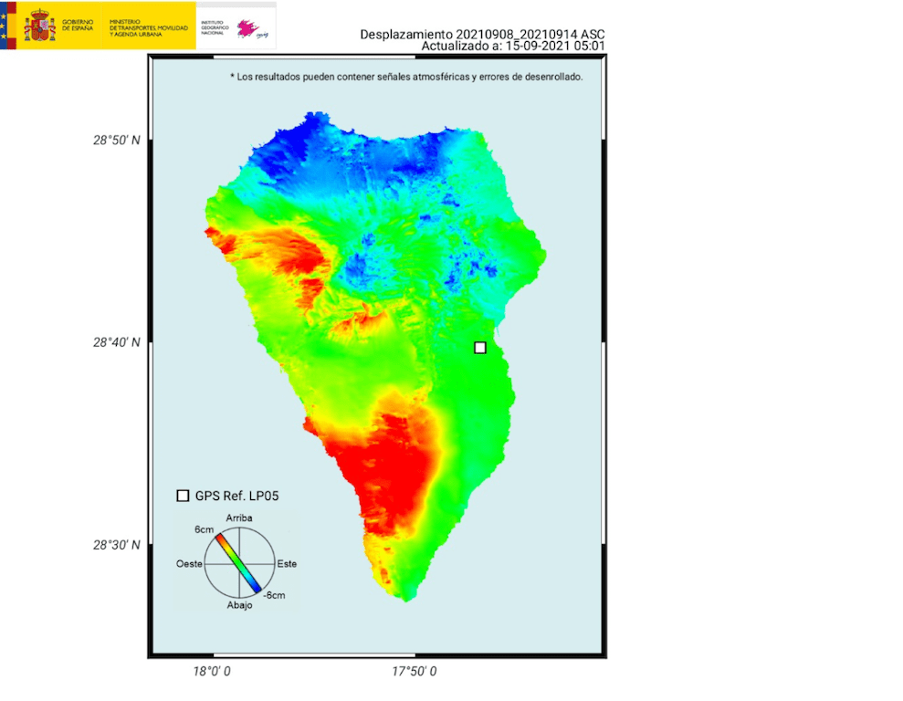 La superficie de la zona donde se concentra la mayoría de los movimientos sísmicos en el área de Cumbre Vieja se ha deformado unos seis centímetros. Datos que aporta el comité científico del Plan Especial de Protección Civil y Atención de Emergencias por Riesgo Volcánico (Pevolca). que ha recomendado mantener el semáforo en amarillo (nivel 2 de riesgo en una escala de 4) y la situación de alerta para los municipios de la Cumbre Vieja, concretamente Fuencaliente, Los Llanos de Aridane, El Paso y Mazo.