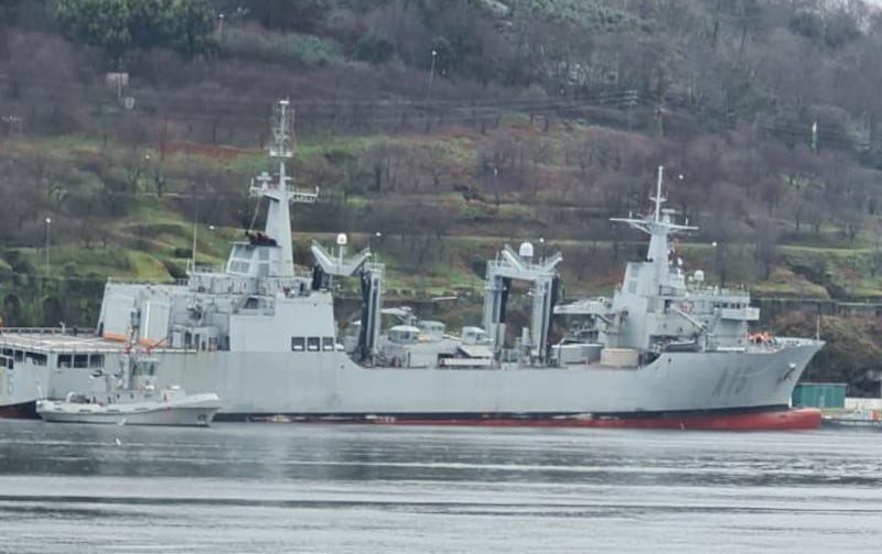 El buque de aprovisionamiento de combate “Cantabria” (A15) se encuentra en preparación para la entrada en el dique seco prevista para esta tarde. Entre las tareas previas necesarias para la varada, el buque fue trasladado desde el muelle 12 de Navantia Ferrol al muelle del Vispón, con la finalidad de vaciar tanques de combustible antes de su varada.