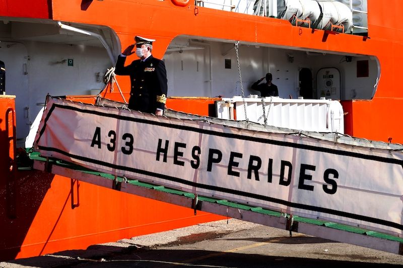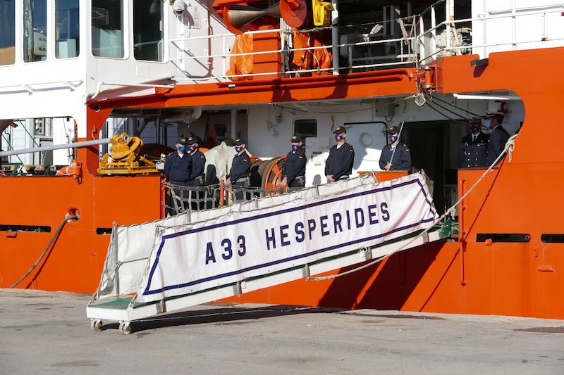 El BIO “Hespérides” –comandante, capitán de fragata Tomás Cordón Scharfhausen, recién estrenado en el mando– ha zarpado este mediodía de su base en el Arsenal Militar de Cartagena en un nuevo viaje a la Antártida para participar en la XXVI campaña antártica, en la que el personal científico realizará trece proyectos y prestará apoyo logístico a las bases polares españolas instaladas en el continente helado.