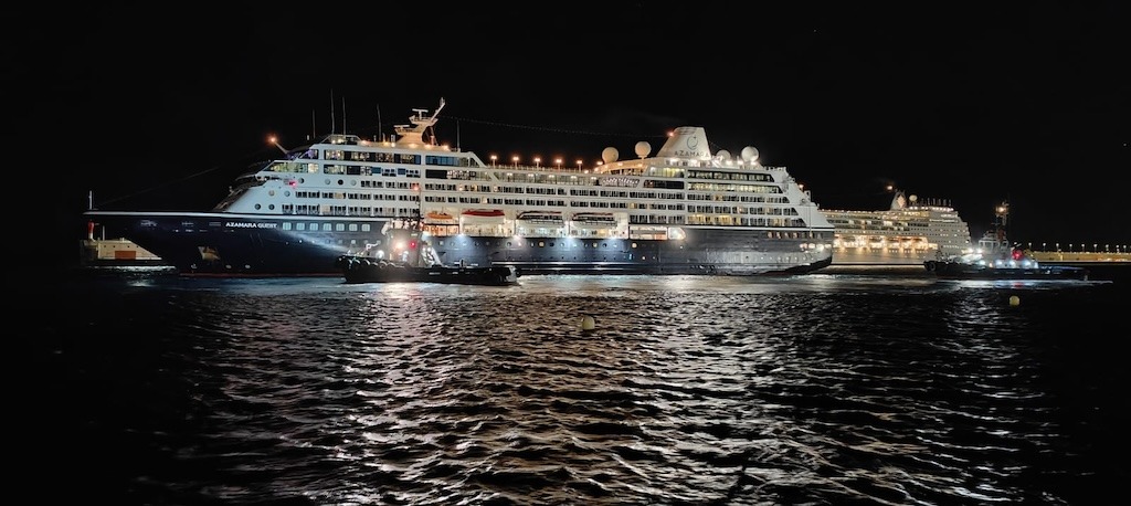 Buscando refugio del temporal, anoche atracó en el puerto de Santa Cruz de Tenerife el buque “Azamara Quest” (IMO 9210218). Debido a las fuertes rachas de viento, de 35 nudos en algunos momentos en la bocana de la bahía, salieron a su encuentro los remolcadores “VB Tenerife” y “VB Canarias”, de la flota de Boluda, para garantizar el atraque con plena seguridad.