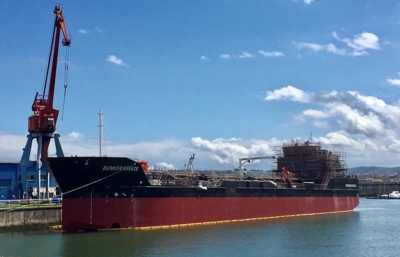 El buque “Bunker Breeze”, la segunda gabarra multiproducto que la multinacional petrolera CEPSA tendrá en breve a su servicio en el puerto de Barcelona, se encuentra realizando pruebas de mar previas a su entrega, prevista en los próximos días. Construido por encargo de Suardíaz Energy Shipping en el astillero Zamakona, Vizcaya, de cuya factoría es la construcción número 787, fue botado el pasado 18 de mayo. Mide 86 m de eslora, 17 m de manga y 7,55 m de puntal y tiene un peso muerto de 5.250 toneladas.