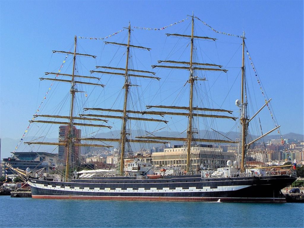 De nuevo en el puerto de Santa Cruz de Tenerife la estampa marinera del buque-escuela ruso “Kruzenshtern”, en el que muestra la gracia y la elegancia de su estampa marinera, que es la de un digno representante de otro tiempo de la historia de la navegación. Para nosotros este barco tiene un atractivo especial, pues se trata de uno de los casi gemelos del histórico “Pamir”, el gallardo velero que forma parte de la historia de Santa Cruz de La Palma –y de la isla toda–, en cuyas aguas, al resguardo del Risco de la Concepción, permaneció internado los años tristes de la Primera Guerra Mundial.