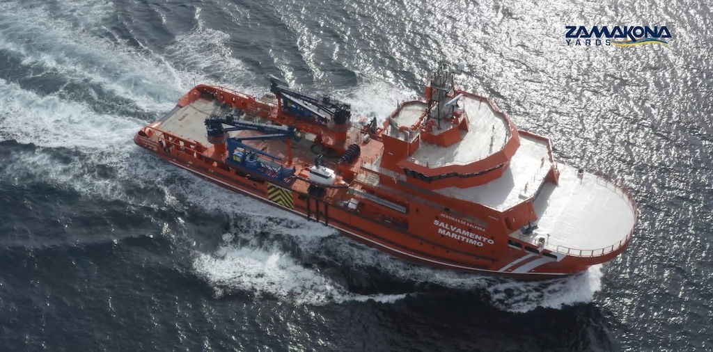 Astilleros Zamakona ha iniciado las pruebas de mar del buque de salvamento “Heroínas de Sálvora” (IMO 9960112) en aguas del Cantábrico. A flote desde el 15 de junio de 2023, en una maniobra controlada sobre el carro y el varadero y de proa, transcurrieron quince meses desde la puesta de quilla del nuevo buque, en marzo de 2022. Si Salvamento Marítimo cumple lo prometido, tendrá su base en el puerto de Santa Cruz de Tenerife.