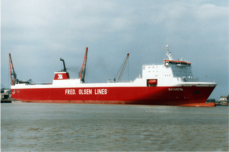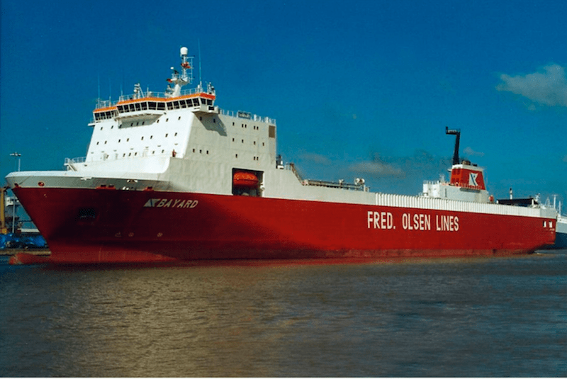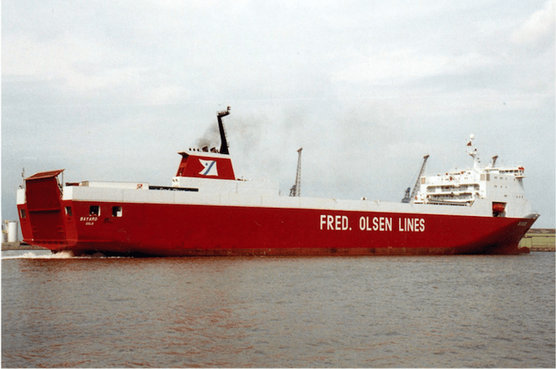La construcción de este buque fue encargada por Fred. Olsen & Co. para cubrir una línea de carga rodada entre Oslo, Hamburgo, Rotterdam, Zeebrugge e Inmingham. El proyecto tiene origen nórdico y el contrato se adjudicó al astillero Fincantieri, factoría de Ancona, donde el 9 de enero de 1997 se procedió a la puesta de quilla de la construcción número 5.994. El 22 de agosto siguiente resbaló por la grada con el nombre de “Bayard” y el 3 de diciembre de ese mismo año se entregó a su armador, siendo abanderado en Noruega e inscrito en la matrícula naval de Oslo. El 18 de diciembre zarpó de Ancona y seis días después se estrenó en la línea para la que había sido construido.