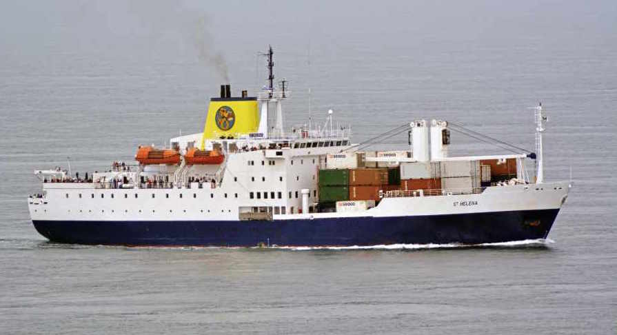 El buque “St. Helena”, que se había despedido del servicio en junio pasado en el que navegaba desde 1990, en que tomó el relevo al anterior de su mismo nombre, tiene capacidad de alojamiento para 128 pasajeros y 56 tripulantes, debido a las faenas de carga y/o descarga que tiene que hacer en el fondeadero de St. Helena. Dos veces al año viaja a Tristán de Acuña, otra isla remota del Atlántico Sur. En la actualidad está operado por Andrew Weir Shipping Ltd.