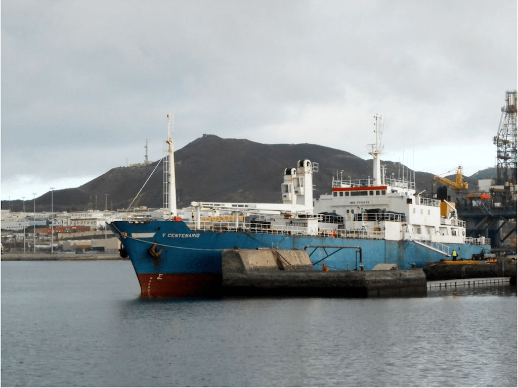 Mariscos Rodríguez S.A., empresa pesquera con sede en Huelva, es la propietaria del buque “V Centenario”, inscrito en la matrícula naval de Las Palmas de Gran Canaria, puerto en el que hace escala frecuente –como apreciamos en la foto de nuestro estimado colaborador David Pérez Rivero– en sus viajes de ida y vuelta a los caladeros africanos. Es el único de la serie de ocho buques que mantiene bandera española.