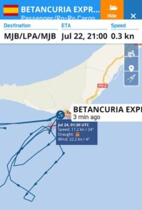 Hasta entonces, el catamarán “Betancuria Express”, que procedía del puerto de Las Palmas, estuvo dando vueltas durante algo más de cuatro horas, en un viaje que tuvo una duración inesperada de unas seis horas.