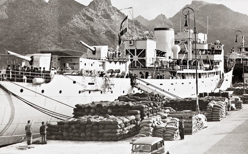 Recién acabada la guerra civil, el crucero auxiliar “Mar Cantábrico” estuvo dos veces en el transcurso de 1939 en el puerto de Santa Cruz de Tenerife. La primera escala está recogida en la prensa local en el mes de junio –comandante, capitán de fragata Faustino Ruiz González–, en viaje de instrucción con 18 alféreces de navío en viaje de instrucción. La escala tuvo una duración de tres días y volvería en diciembre de ese mismo año.