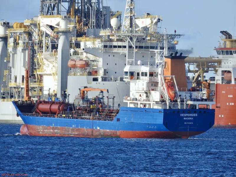 El recién adquirido petrolero “Hespérides”, cuarto en la historia de Distribuidora Marítima Petrogás y primero con este nombre tan arraigado en la historia de la citada compañía abanderado en Portugal, se encuentra en el puerto de Las Palmas de Gran Canaria, para su inmediata varada en ASTICAN, donde será pintado con la imagen corporativa del brazo naval de DISA.