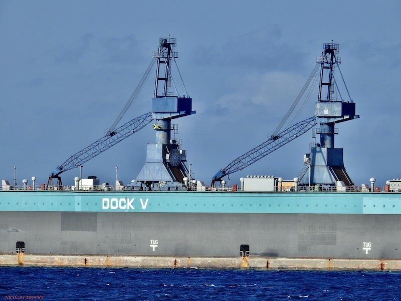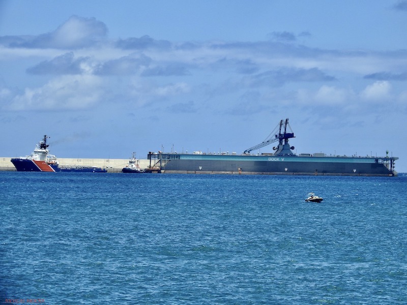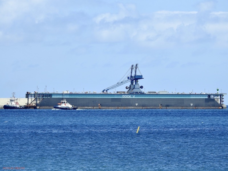 Tras la estela del potente remolcador “Titan” (IMO 9158666), abanderado en Antigua y Barbuda, se encuentra de escala técnica en el puerto de Las Palmas de Gran Canaria el dique flotante de bandera alemana “Dock V”, en su viaje hacia Kingston (Jamaica).