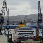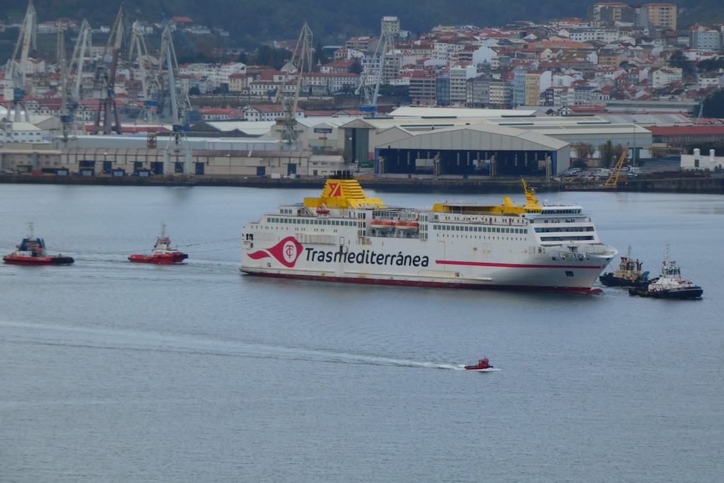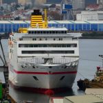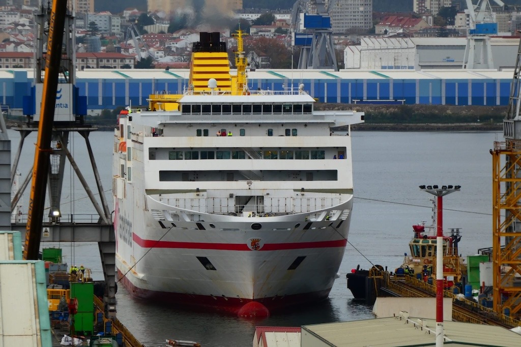 El temporal que azota la costa de Portugal ha retrasado la llegada del ferry de bandera española “Buenavista Express” a Ferrol, que ha arribado con más de doce horas de retraso sobre el horario previsto. Tiene prevista su varada en el dique seco de Navantia Fene, del que saldrá pintado con la imagen corporativa de Fred. Olsen Expres para cubrir la línea Huelva-Canarias.