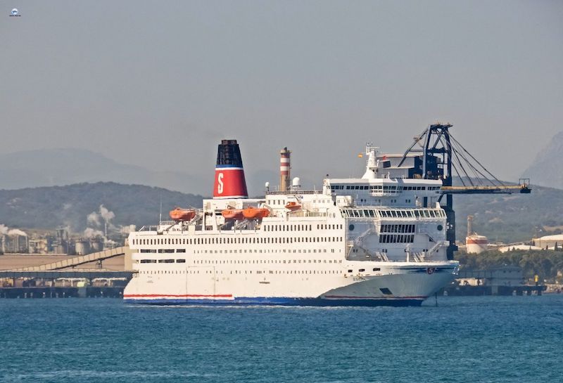 A la espera de que las autoridades de Marruecos autoricen la OPE parcial desde Portugal, la compañía marroquí Inter Shipping parece ser quien se posiciona y ha fletado el ferry “Saga” (IMO 7911545), abanderado en Chipre, que se encuentra fondeado en la bahía de Algeciras. Es un barco de 40 años, construido en Finlandia (ex “Stena Saga”, ex “Stena Britannica”, ex “Silvia Regina”), con capacidad para 2.000 pasajeros –de ellos, 1.600 en camarotes– y 450 coches.