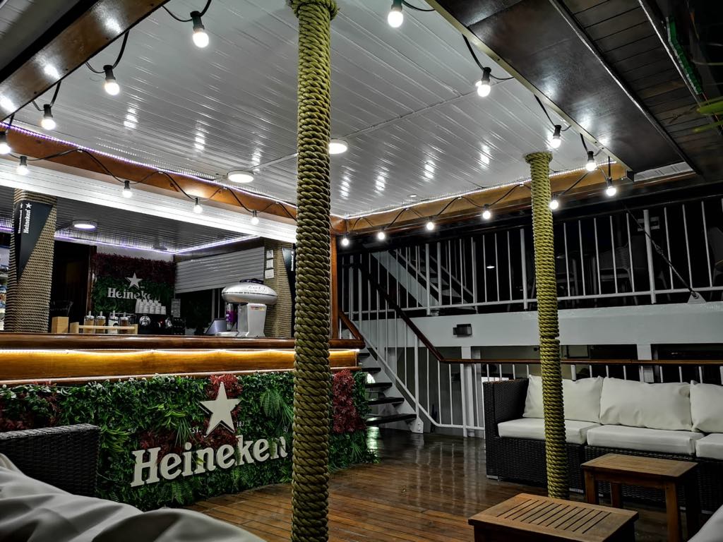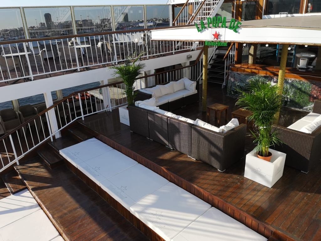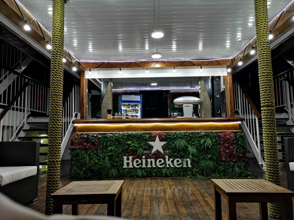 Un acuerdo comercial entre Naviera Armas y Heineken ha hecho que esta sea la cerveza que se ofrece a bordo del buque “Volcán de Tindaya”, para lo que dispone de un espacio concreto denominado “la popa de Heineken”, que corresponde a la zona de ocio.