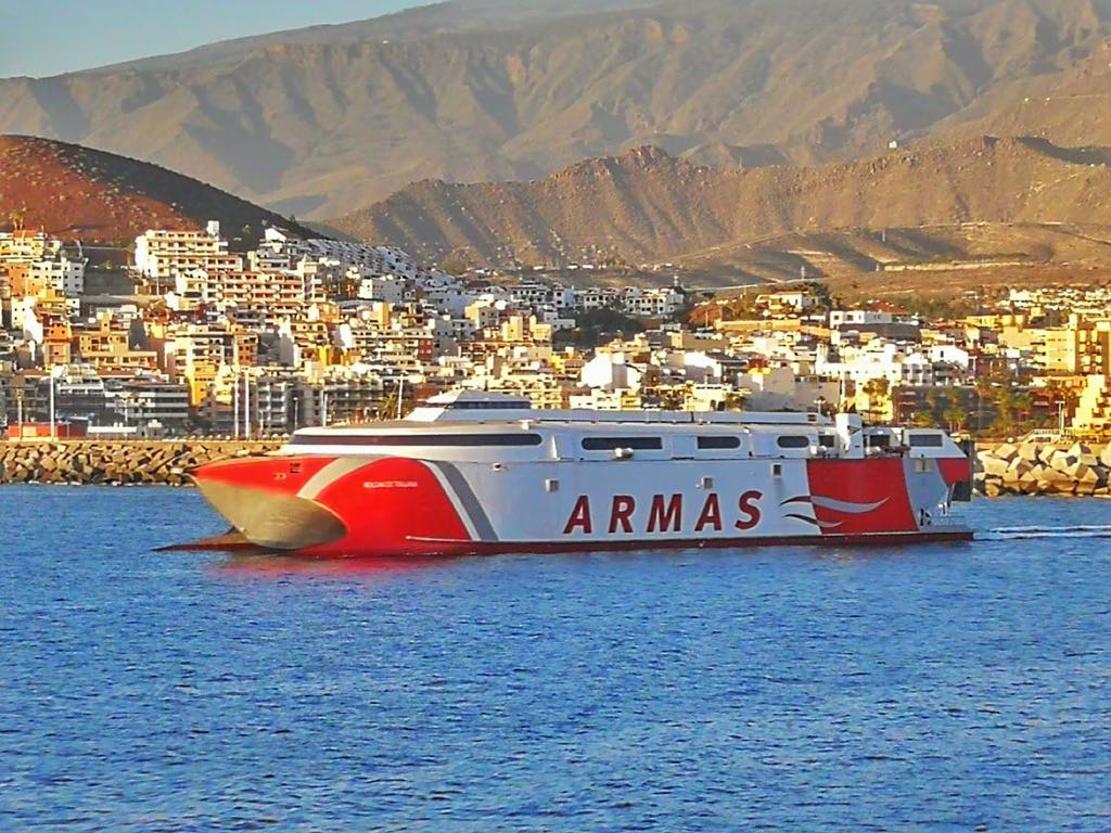 Un renovado “Volcán de Tirajana”, pintado con la imagen corporativa de las embarcaciones de alta velocidad de Naviera Armas, se reincorpora hoy a la línea El Hierro-Los Cristianos, en la que toma el relevo al “Volcán de Teno”, que pasará a cubrir la línea Las Palmas-Tenerife en unión del monocasco “Almudaina Dos”. Los interiores del “Volcán de Tirajana” tienen nuevo mobiliario, moqueta y tapizado, en el que destaca la imagen corporativa de la empresa naviera.