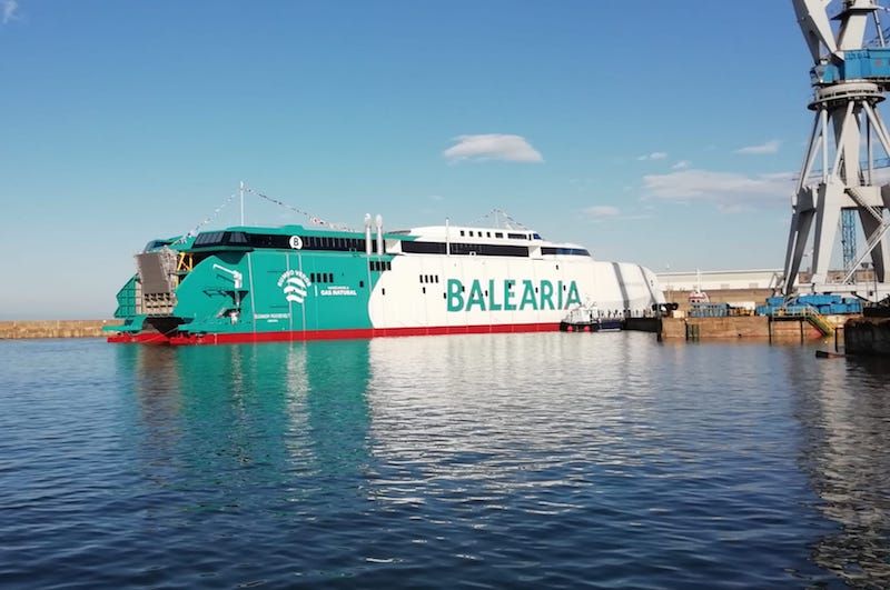 En la maniobra de salida del astillero intervinieron los remolcadores “Dobra” y “Caudal”. A flote desde el 18 de septiembre de 2020, la previsión es que sea entregado a finales de marzo próximo.