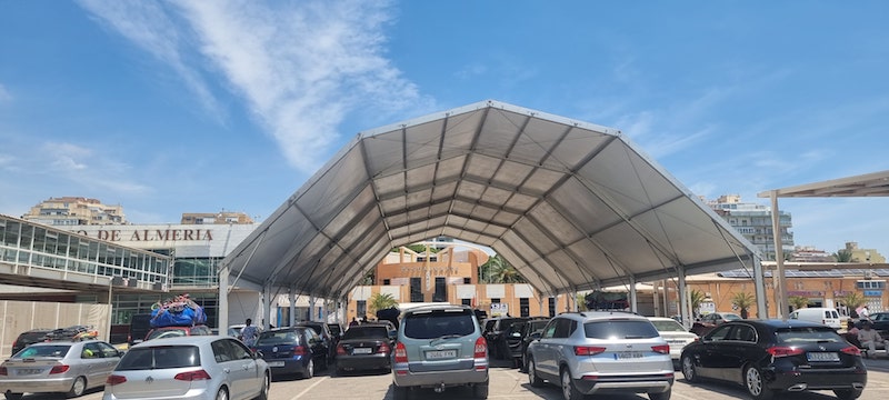 La Autoridad Portuaria de Almería (APA) ha iniciado la instalación de carpas desmontables, unas instalaciones que ocuparán 6.800 metros cuadrados de superficie de sombra en las zonas de espera de pasajeros y vehículos, para la Operación Paso del Estrecho 2022. Con estas estructuras desmontables, más las fijas existentes, el puerto de Almería ofrecerá casi 15.000 metros cuadrados de zonas de sombra para la próxima OPE.