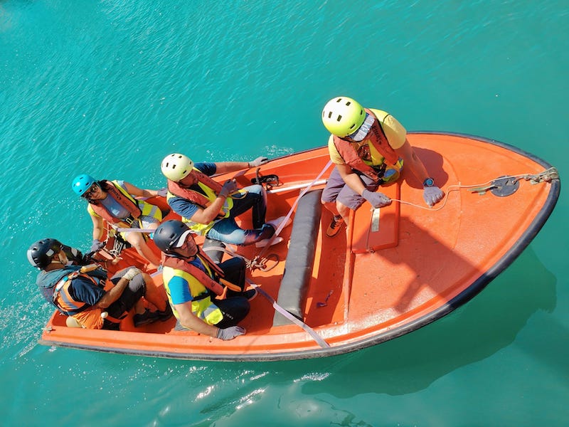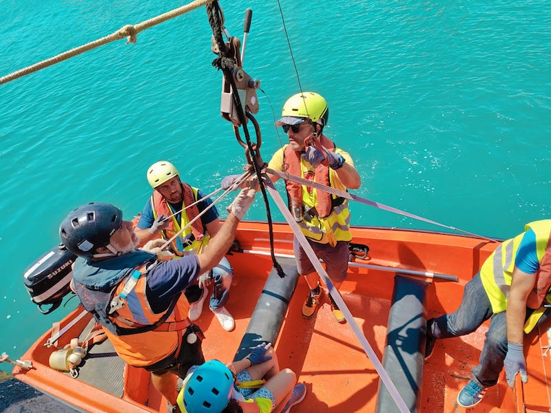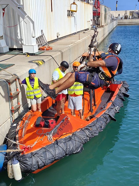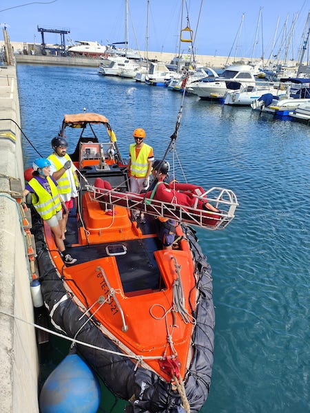 Parte de las prácticas de este curso consiste en realizar maniobras de rescate, como se específica en el STCW (iniciales de Standards of Training, Certfication, and Watchkeeping, Estándares de Formación, Certificación y Vigilancia).
