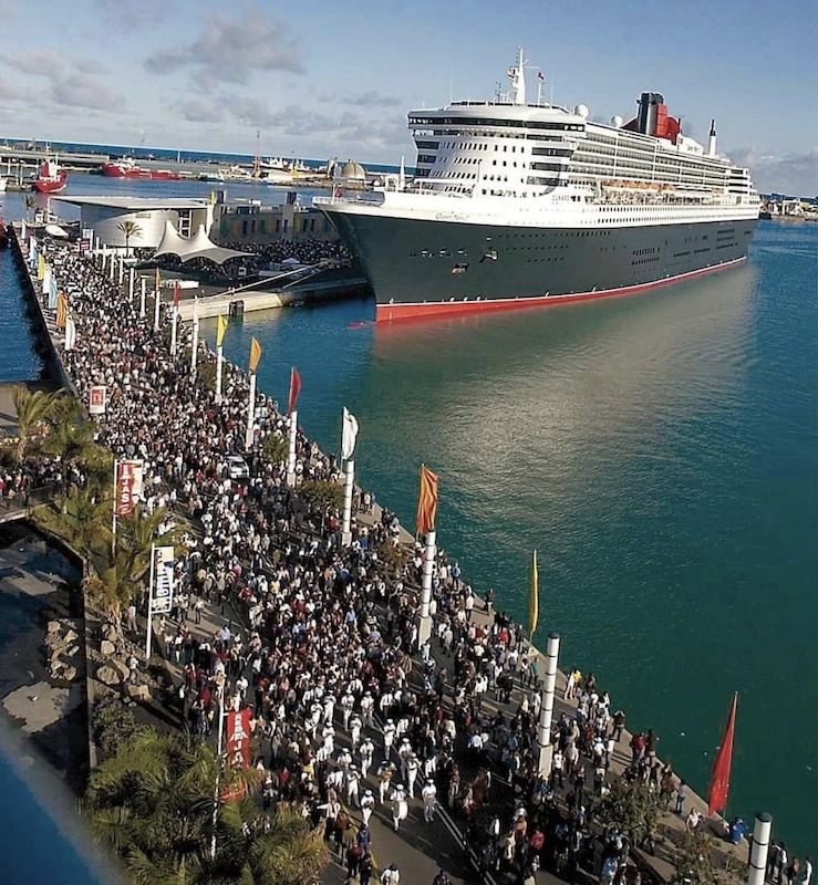 El puerto de Las Palmas de Gran Canaria ha celebrado el 20º aniversario de la primera escala del gigante “Queen Mary 2”, en enero de 2004, como cabría esperar, con la unión de la Autoridad Portuaria y ACCOMAR y la coincidencia del emblemático barco. Todo lo contrario de lo que ha hecho del puerto de Santa Cruz de Tenerife, donde, al igual que en el puerto vecino, la presencia de este buque en su viaje inaugural hace veinte años fue todo un acontecimiento. Hasta el punto de que colapsó el tráfico en la Avenida de Anaga y alrededores, como también sucedió en el muelle de Santa Catalina, donde miles de personas se acercaron a verlo de cerca en su atraque.