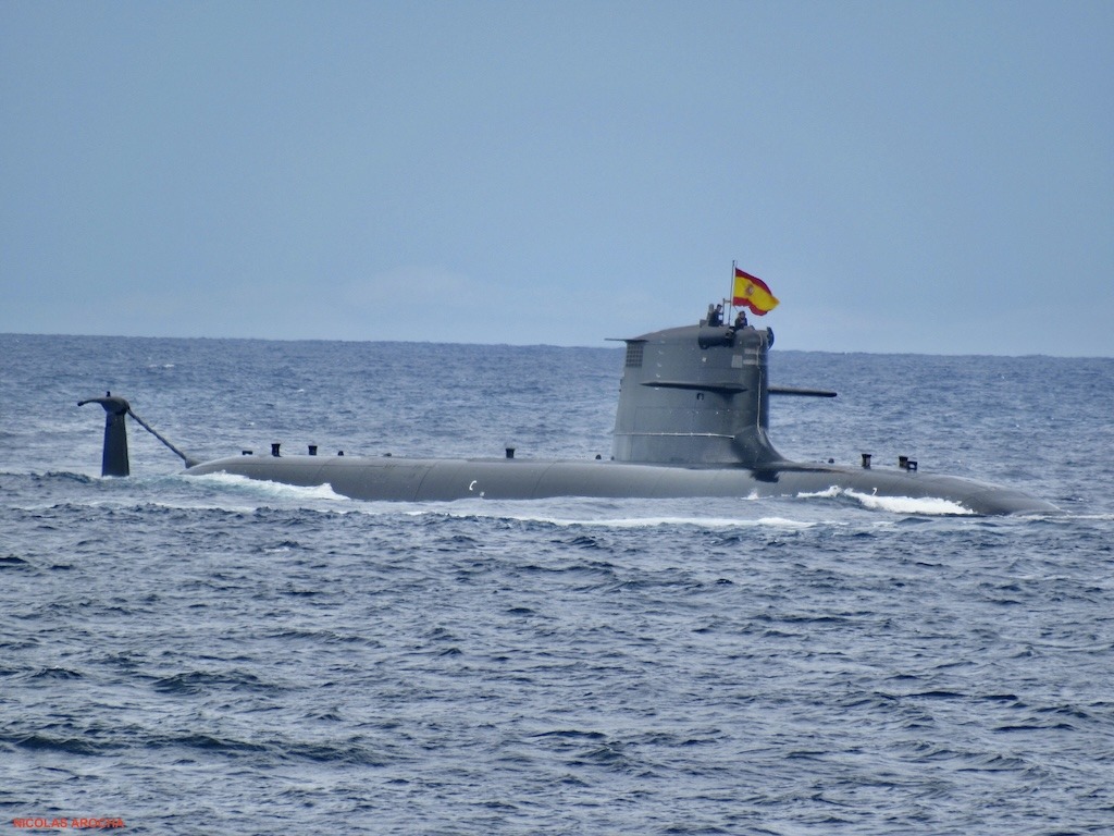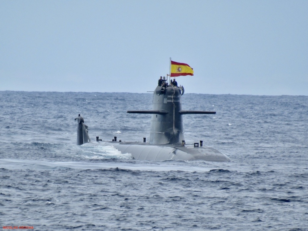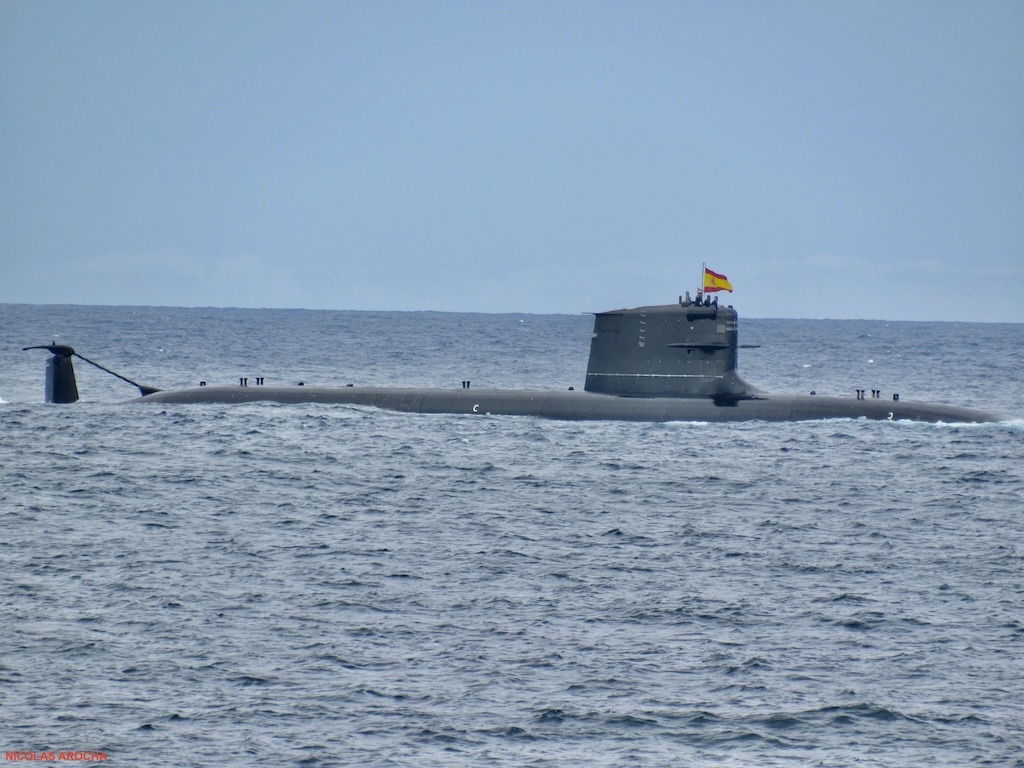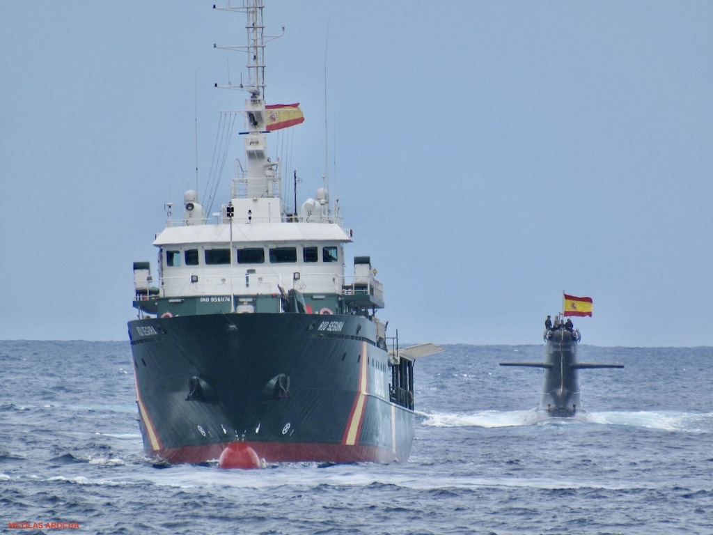El submarino S 81 “Isaac Peral” ha salido esta tarde para un ensayo de lo que será mañana la revista naval frente a la avenida marítima de Las Palmas de Gran Canaria y a su regreso al puerto de la capital grancanaria ha sido escoltado por el patrullero de altura “Río Segura”, del Servicio Marítimo de la Guardia Civil.