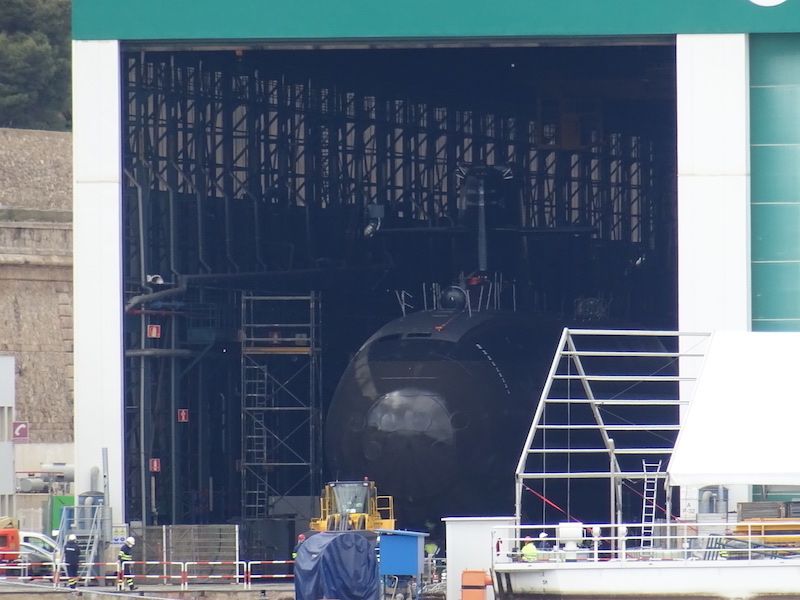Después de cuatro horas de operación de remolque desde el interior de la nave central de Navantia Cartagena, el submarino S-81 “Isaac Peral” se encuentra posicionado frente a la carpa en la que el próximo 22 de abril se celebrará el acto oficial de su presentación, en presencia del rey Felipe VI y otras altas autoridades del país. La puesta a flote está prevista para finales de mes. La maniobra ha sido seguida con extraordinario interés y entre ellos nuestro colaborador José Julián Pérez Matéu, oficial submarinista retirado.