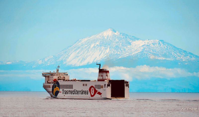 En estos días, tras la última nevada invernal, El Teide ofrece un imponente y majestuoso aspecto que es motivo de admiración y atención preferente para los fotógrafos que encuentran en este icono de la naturaleza volcánica de Canarias una fuente preferida de inspiración. Así lo ha entendido nuestro colaborador Francisco Jiménez Acosta, que ha captado el momento de la salida del buque “Villa de Tazacorte” del puerto de Santa Cruz de La Palma, en un encuadre estético que resume el principal cometido de Naviera Armas Trasmediterránea como garante principal de la exportación frutera de la isla, como destaca el gran logotipo de Plátano de Canarias en el costado, fuente de trabajo y motor económico y El Teide como argumento vital.