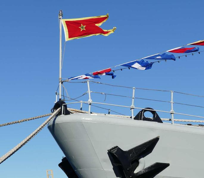 En definitiva, las banderas que los buques de guerra de las diferentes Armadas del mundo izan en su mástil proel, como se ha visto tienen sus particularidades de diseño, pero todas tienen como denominador común el hecho de ser usadas en situaciones prácticamente iguales, y no dejan de formar parte de ese particular “ceremonial marítimo” que cada país tiene en vigor.