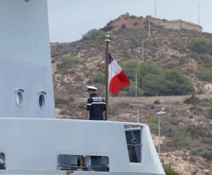 Por lo que a los buques de nuestra Armada respecta, su uso está regulado y determinado por lo que dice el “ceremonial marítimo”, que básicamente especifica que es una bandera pequeña que recibe el nombre de “tajamar o torrotito” y que se izará en el mástil de proa sólo en determinadas circunstancias, a saber: todos los días festivos que el buque se encuentre en puerto nacional, todos los días laborables en que el buque, estando en puerto español, coincida con la escala -en ese mismo puerto- de otro buque de guerra de cualquier nacionalidad, siempre que el buque se encuentre atracado en un puerto extranjero, independientemente de si es festivo o laborable, cada vez que se ice el engalanado general con motivo de fiesta de especial relevancia o siempre que el Jefe del Estado permanezca a bordo de la unidad.