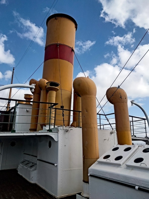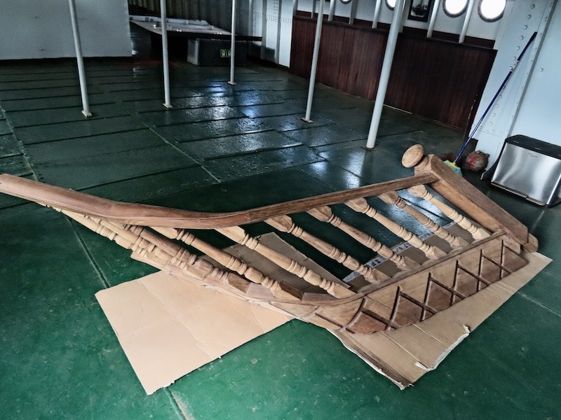 En el reportaje fotográfico de nuestro colaborador Jerónimo Rodríguez Rosales, que lo ha visitado recientemente, podemos apreciar de manera parcial el estado en que se encuentra el histórico buque, que será el primer cliente del nuevo dique flotante de Tenerife Shipyards, cuando llegue al puerto de Santa Cruz de Tenerife en el primer trimestre de 2026.