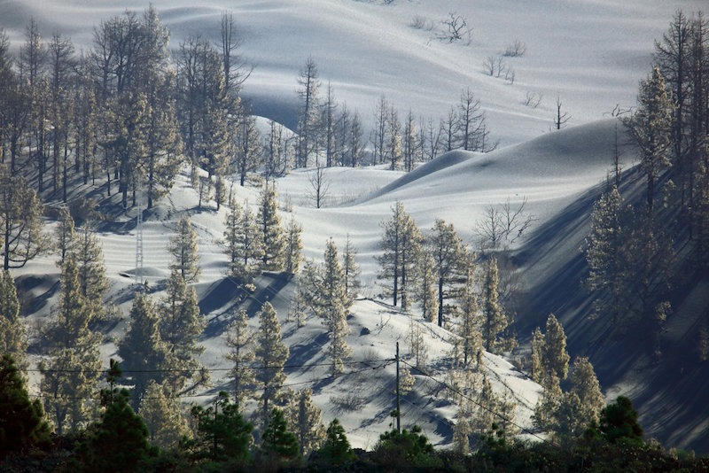 En niveles bajos, predomina el viento del NE con rachas que pueden alcanzar los 50-60 km/h en cumbres, El Paso y los Llanos de Aridane, disminuyendo a lo largo de la tarde. En los niveles comprendidos desde superficie hasta los 5.000 m, el viento es del N a NE. Se prevé que la nube de cenizas y SO2 continúe hacia el S-SO (al menos las próximas 48-72 h) .Lo anterior supone un escenario favorable para la operatividad del aeropuerto de La Palma. Hoy, lluvias débiles afectando a vertientes N y E de La Palma, que podrán ser más persistentes en medianías NE.