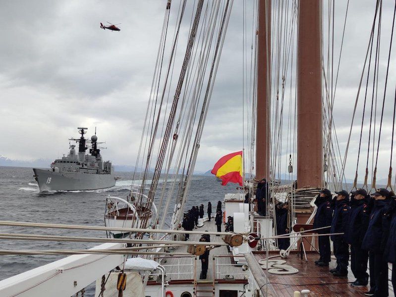 Siguen celebrándose en Chile, con las restricciones que impone la crisis sanitaria del covid-19, los actos conmemorativos del V Centenario de la Vuelta al Mundo y el descubrimiento del Estrecho de Magallanes, con la presencia de dos protagonistas destacados. Dos embajadores que tienen la misma cuna: los buques-escuela “Juan Sebastián de Elcano” y “Esmeralda”. Ambos se encuentran en el puerto de Punta Arenas, donde el buque-escuela español ha recibido la visita del almirante jefe de Estado Mayor de la Armada, almirante general Teodoro López Calderón y el comandante en jefe de la Armada de Chile, almirante Julio Leiva Molina.