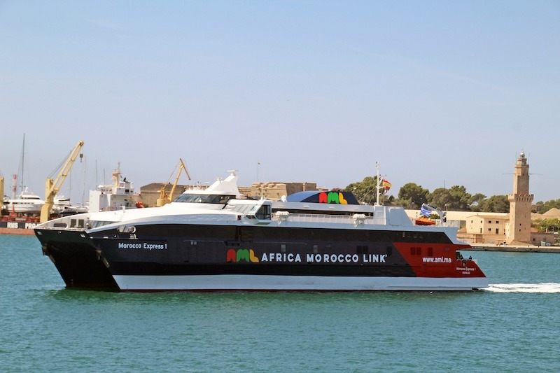 El catamarán de bandera griega “Morocco Express 1” arribó esta mañana en escala técnica al puerto de Palma, capital de Mallorca, en su viaje de posicionamiento entre El Pireo y Algeciras, para luego pasar a Tarifa (Cádiz), donde operará durante la OPE al servicio de la compañía marroquí AML, participada por Stena Line.