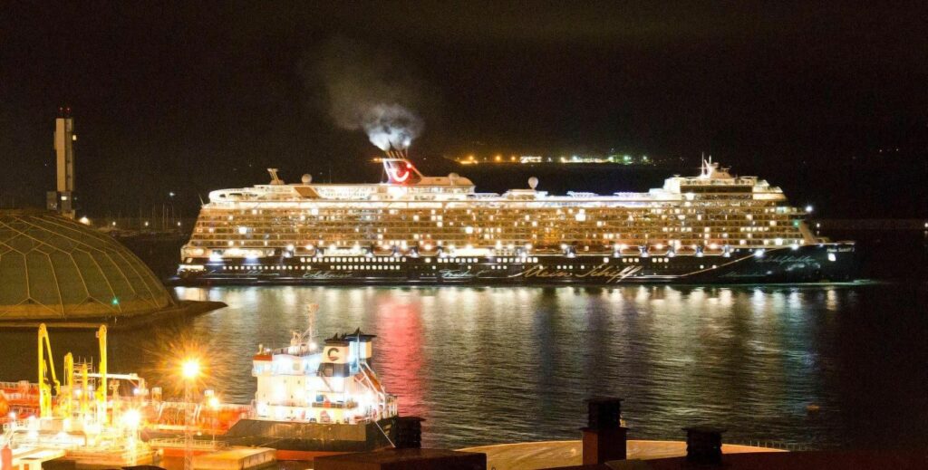El puerto de A Coruña es el primero en España que recibe al recién estrenado buque “Mein Schiff 2” -capitán Kjell Holm-, donde permanecerá hasta las 18 h. A finales de enero fue entregado a Tui Cruises en el puerto de Kiel, después de la decisión tomada por el astillero Meyer Turku para evitar daños en la pintura de silicona de la obra viva, que podría verse afectada por los hielos que dominan la época del año en Finlandia.