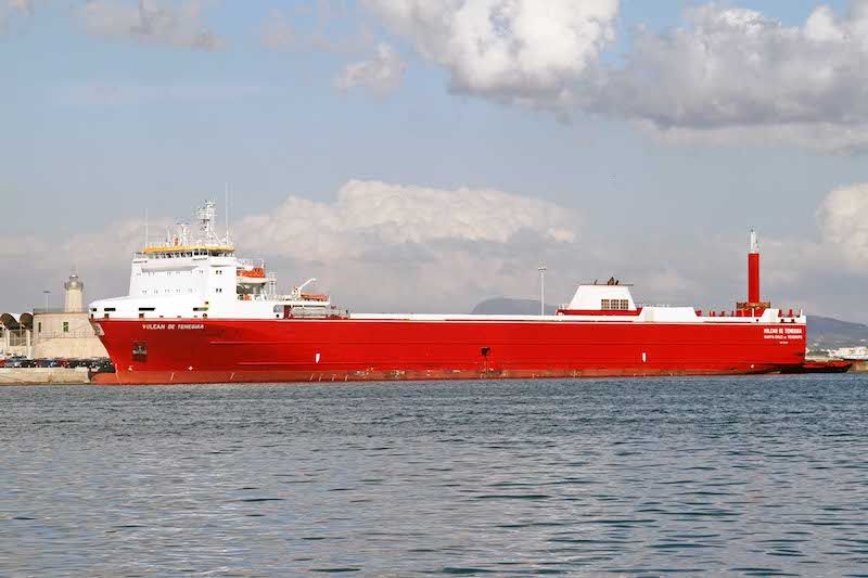 El buque“Volcán de Teneguía” se ha estrenado hoy en la línea Palma-Valencia, en la que permanecerá hasta final de verano, como refuerzo del servicio de carga rodada y contenedores del Grupo Armas-Trasmediterránea. Importante movimiento de ficha, que garantiza capacidad plena en la demanda de carga y ofrece todas las garantías a los cargadores que habitualmente suministran a la capital balear.