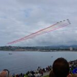 Unas 150.000 personas según estimaciones oficiales asistieron este fin de semana a la celebración del Festival Aéreo de Gijón, del que se ha cumplido su XIV edición con un resultado muy aceptable, pese a que la meteorología no acompañó como se esperaba en el mes de julio, pues hubo agua y niebla y provocó retrasos.