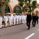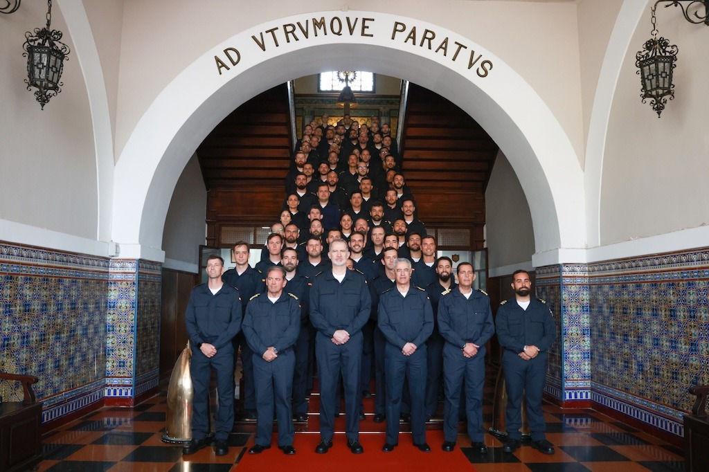 A su llegada al Arsenal Militar de Cartagena, el Rey ha sido recibido con honores de ordenanza por el almirante Jefe de Estado Mayor de la Armada, almirante general Antonio Piñeiro Sánchez; almirante de la Flota, Eugenio Díaz del Río Jáudenes; y el comandante de la Flotilla de Submarinos, capitán de navío Pedro Márquez de La Calleja.