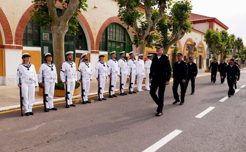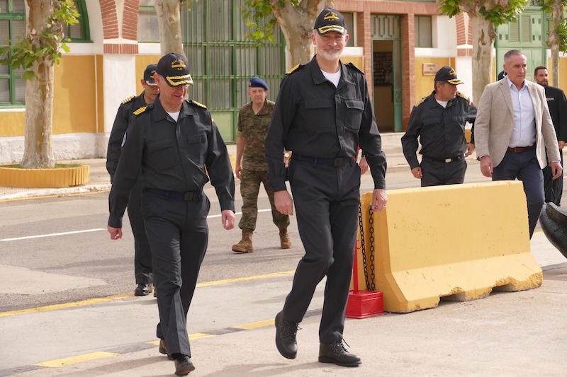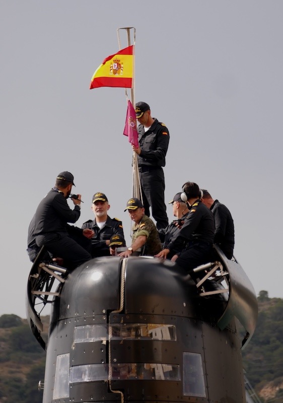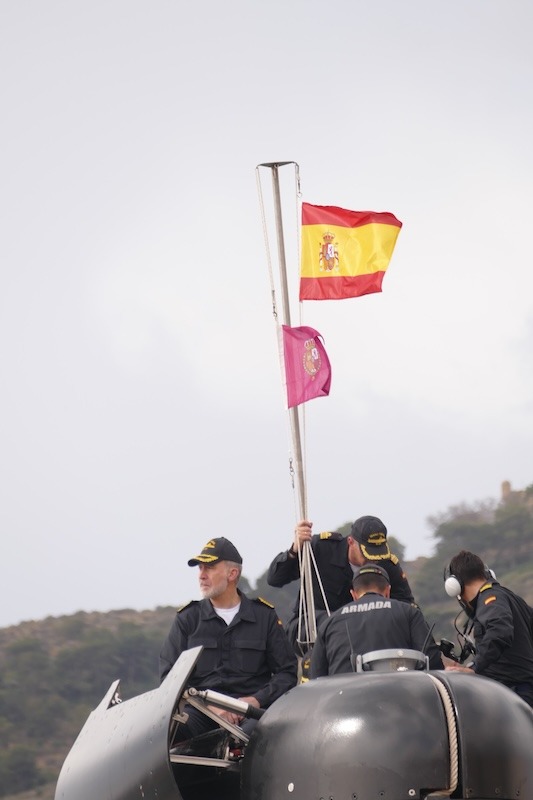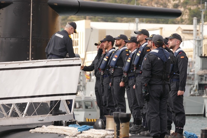 A su llegada al Arsenal Militar de Cartagena, el Rey ha sido recibido con honores de ordenanza por el almirante Jefe de Estado Mayor de la Armada, almirante general Antonio Piñeiro Sánchez; almirante de la Flota, Eugenio Díaz del Río Jáudenes; y el comandante de la Flotilla de Submarinos, capitán de navío Pedro Márquez de La Calleja.